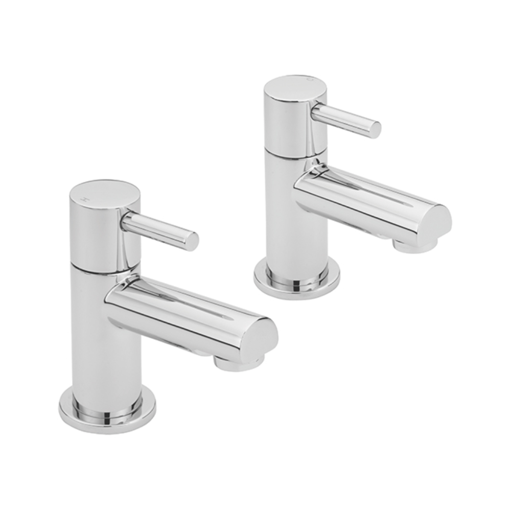 A pair of premium basin pillar taps that have a sleek modern design with contemporary levers that would suit any modern bathroom or cloakroom – smooth single lever ceramic disk operation.