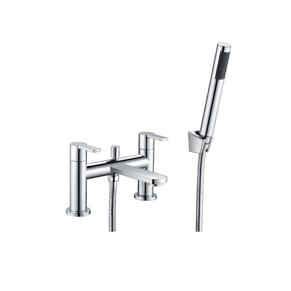 A premium minimalist bath shower mixer tap with a rounded body and softly curved lever to suit any modern bathroom – smooth single lever ceramic disk operation